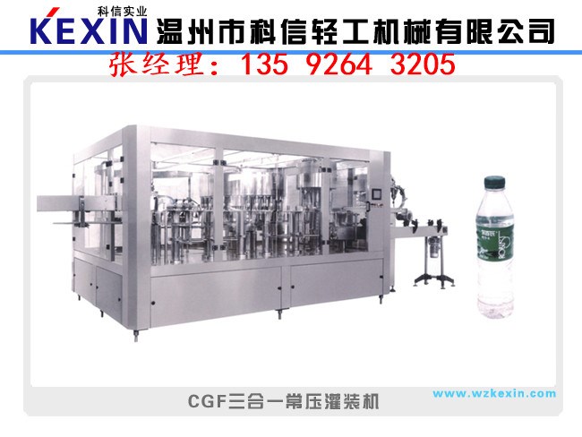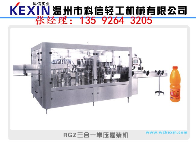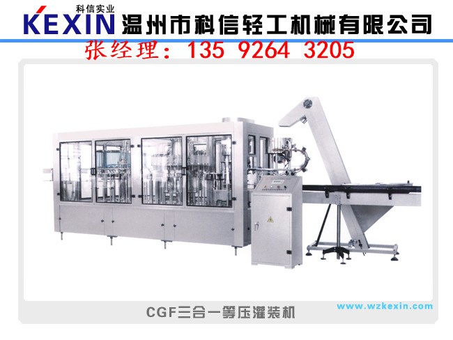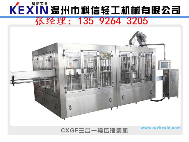 在日常生活中,可樂雪碧還有汽水以及市場上異常火爆的雞尾酒,通常都是采用等壓灌裝的方式。由沖瓶,灌裝,封口一體機來完成,簡稱三合一灌裝機。等壓灌裝機是在高于大氣壓的條件下,首先對包裝容器充氣,使之與貯液箱內氣壓相等,再依靠液料的自重流進包裝容器內的罐裝方法。